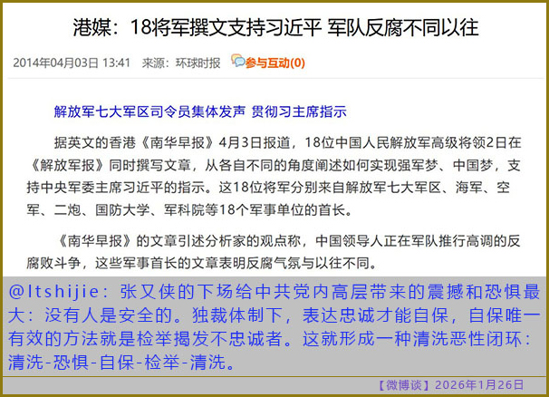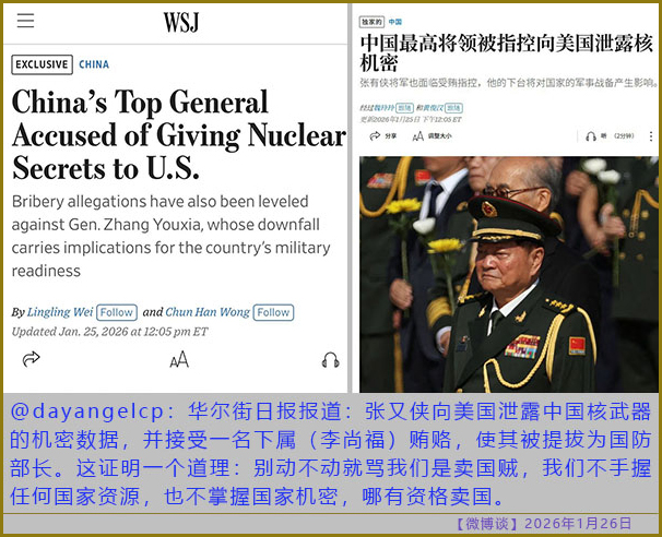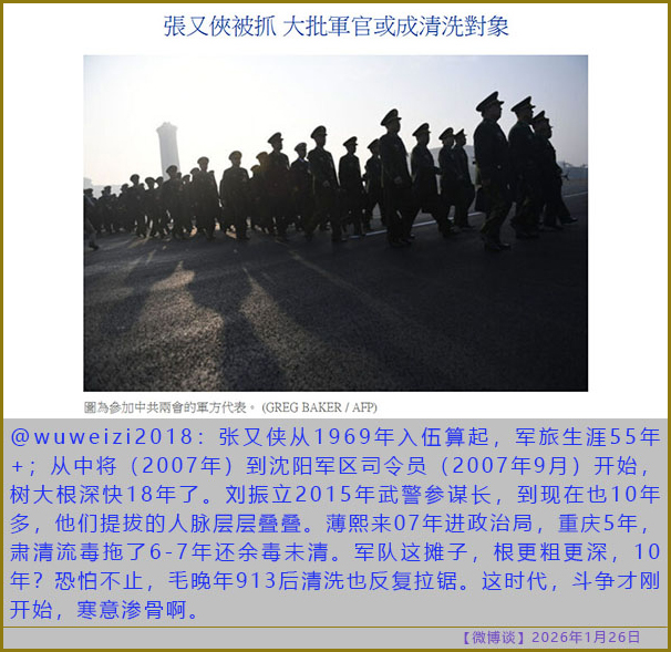 [微博谈 2026/01/26] 越清洗越恐惧,越恐惧越清洗