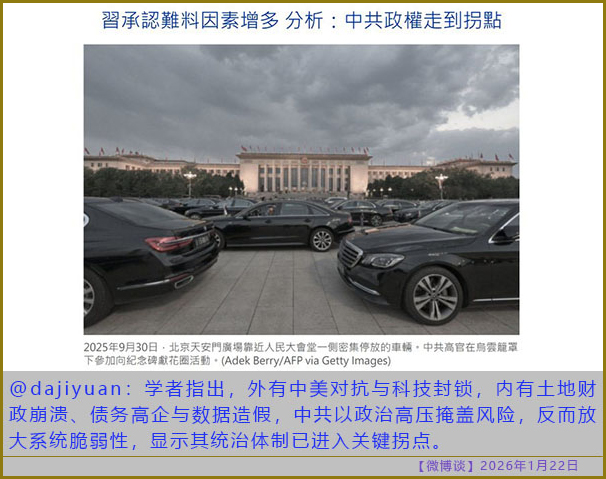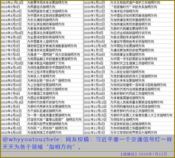 [微博谈 2026/01/22] 习近平像一个交通信号灯