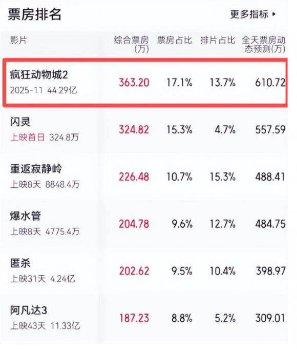 而当下还正处于寒假,学生群体大量涌入市场,院线当然乐得太高《疯狂动物城 2》的排片。