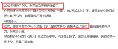网传谢苗为了重回院线,直接投了 2000 万。