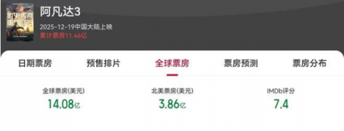 而几乎同期推出的《阿凡达 3》,全球票房也高达 14.08 亿美元。