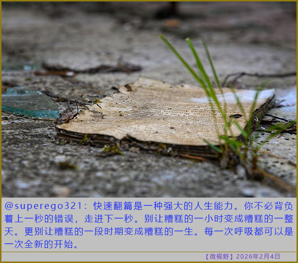 [微视野 2026/02/04] 快速翻篇是一种强大的人生能力