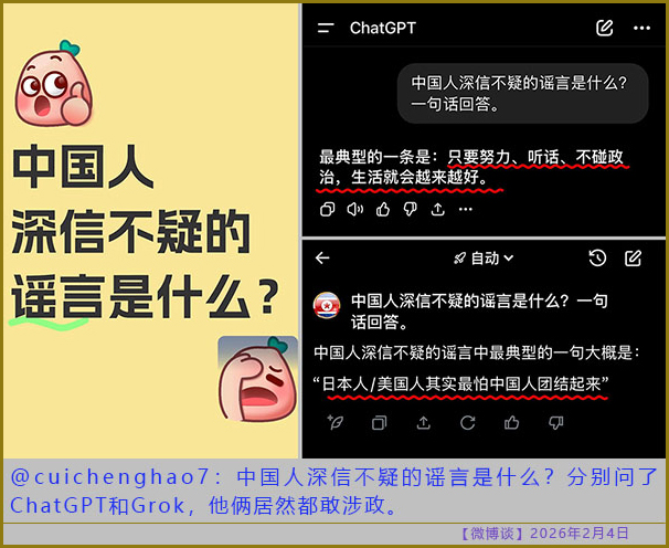 [微博谈 2026/02/04] 中国人深信不疑的谣言是什么?
