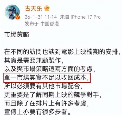 古天乐曾经发文表示,单一市场其实不足以收回成本,也就意味着已经在内地上映月余的《寻秦记》,即便有一个亿的票房到了片方手里,也依旧回不了本。