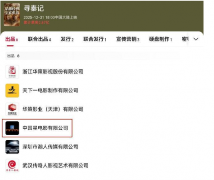 而在个人社交账号上,爆料过给《寻秦记》投了 2000 万的向华强,其公司中国星排在出品方的第四位,占 10% 的份额。