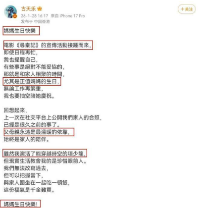55 岁还要马不停蹄的亲自宣传,一边维系观众,一边还要主持加长版配音工作,就连给母亲过生日的动态,也得带着《寻秦记》。