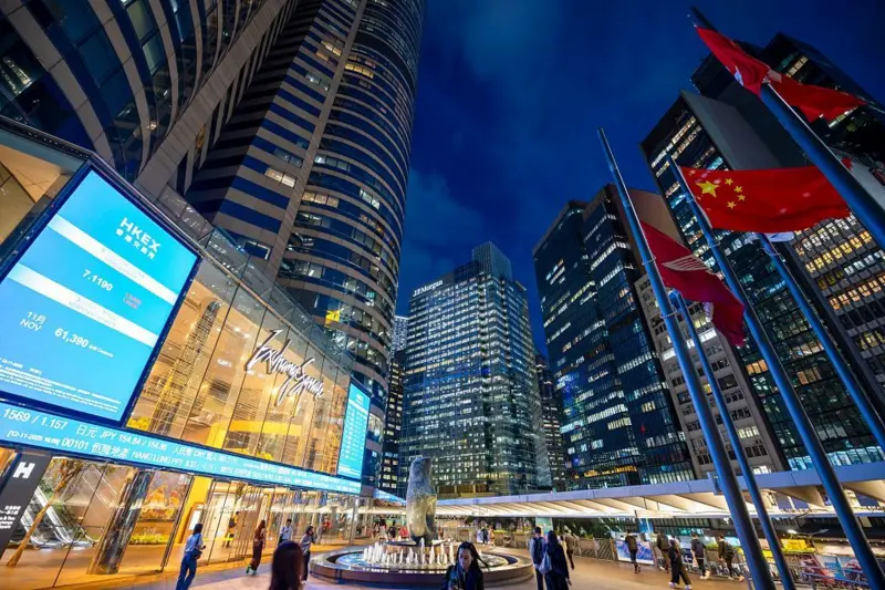 今年1月,香港中环交易广场外的电子萤幕昼夜闪烁。 短短一周,几家中国大陆科技公司接连在港交所“敲钟”上市。北京大模型公司智谱AI、上海伊露维达CoreX、以及手术机器人公司深圳锐视医疗同一周挂牌,合计筹集约92亿港元。