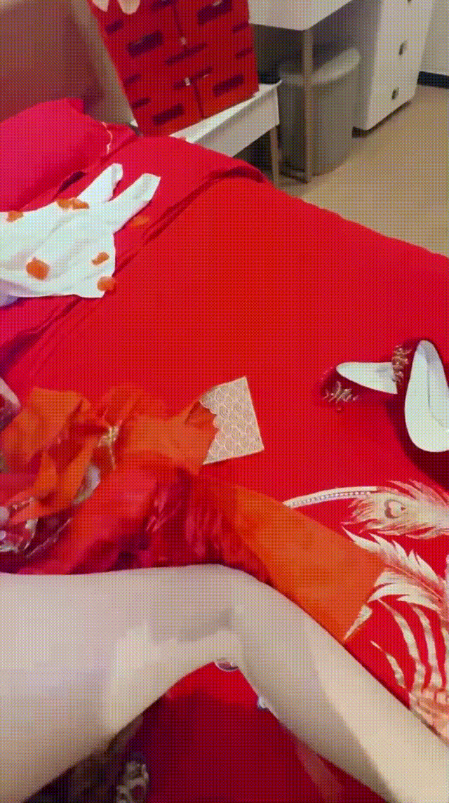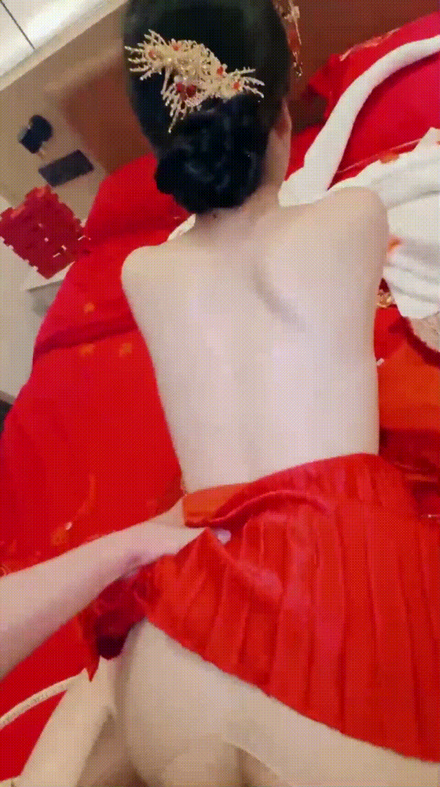 【4】☘新娘穿红色婚纱,胸前鼓胀,纱裙下腿白得勾魂。 掀裙露出湿漉嫩穴撩你硬邦邦,她靠墙张腿,你插进她紧逼猛干