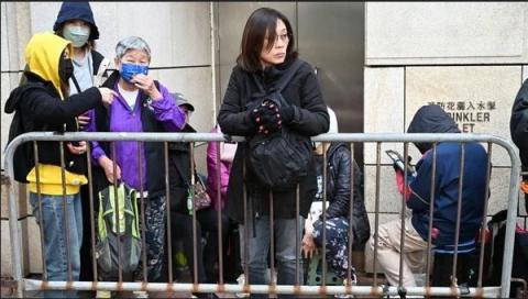 2026年1月12日,香港民众在西九龙裁判法院外排队,等待黎智英的判刑。