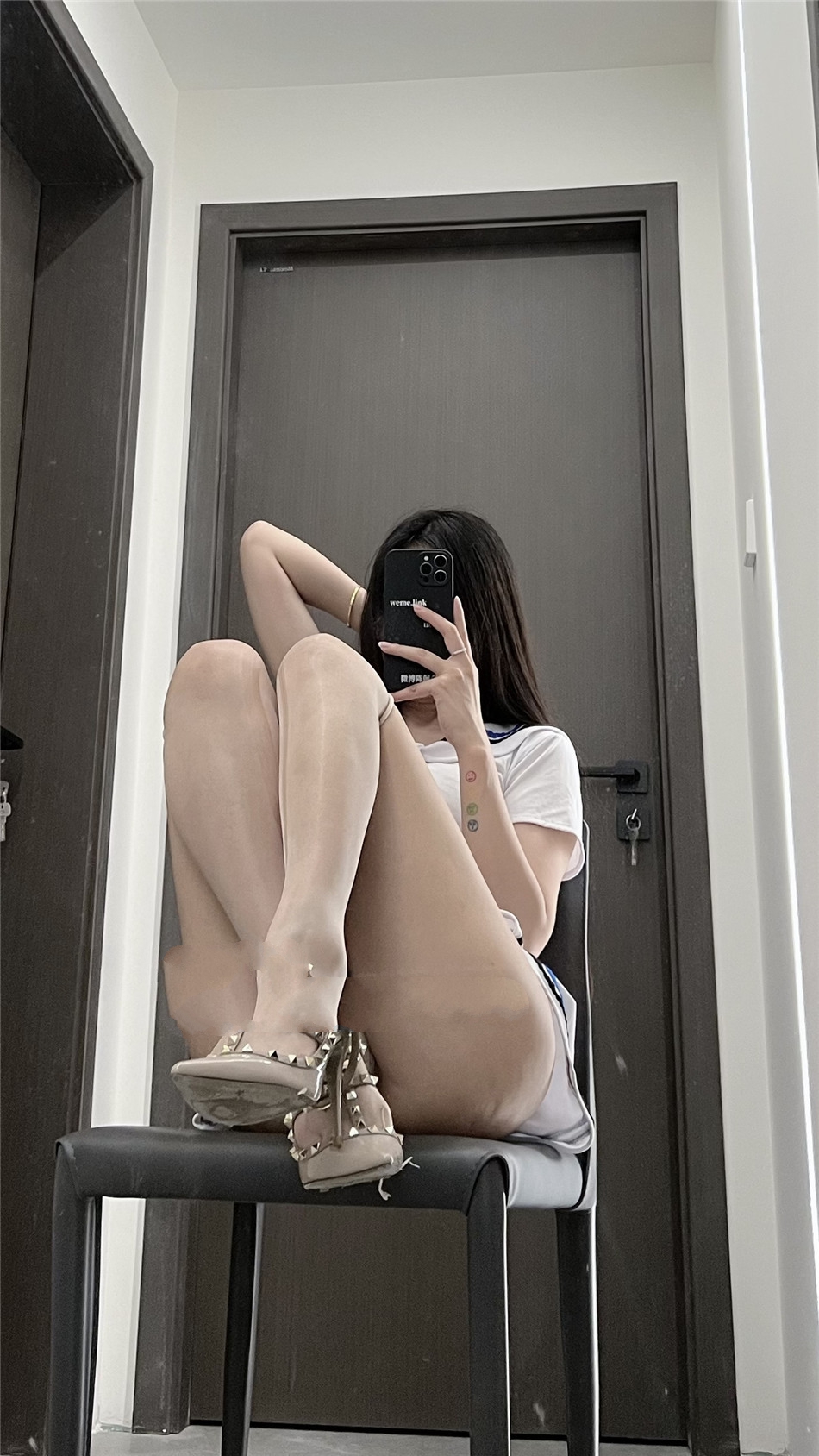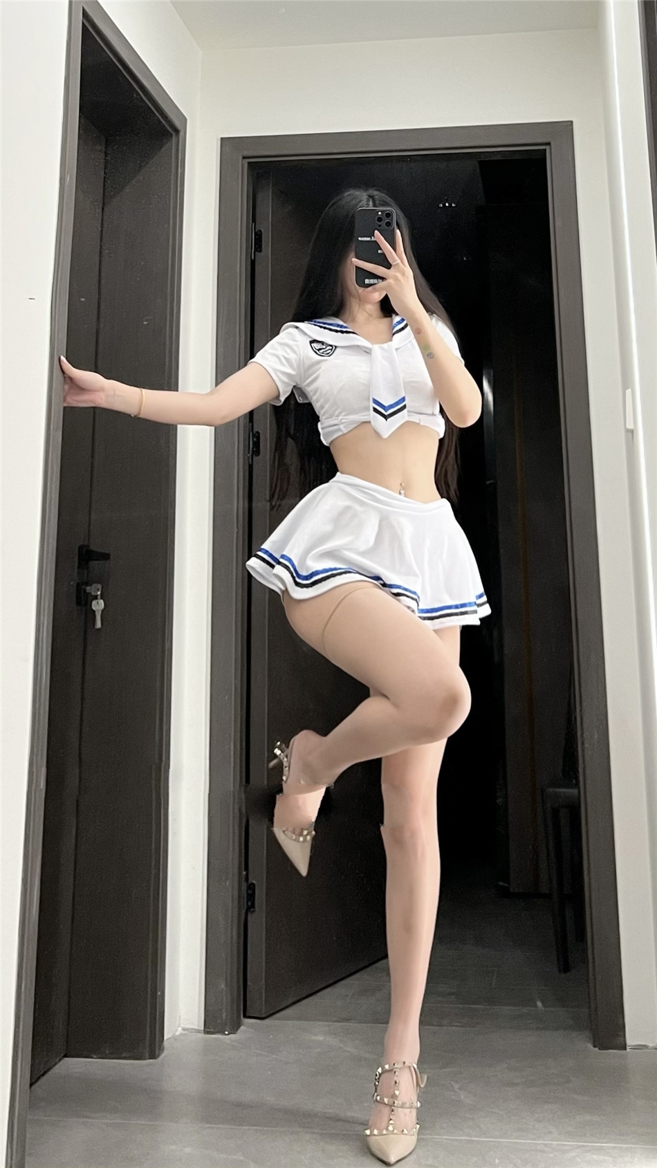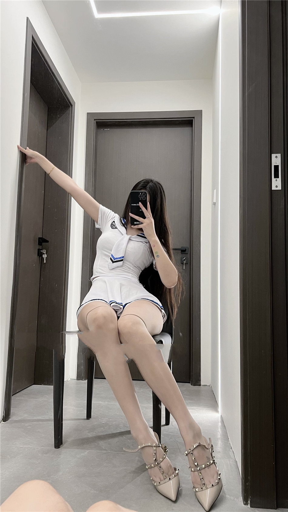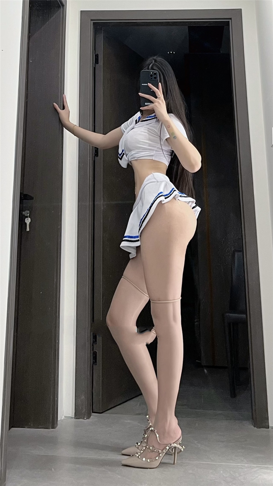 [写真] 模特抖娘利世浅粉色上衣搭配白色短裙性感写